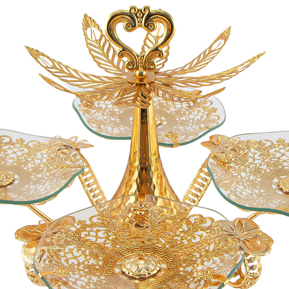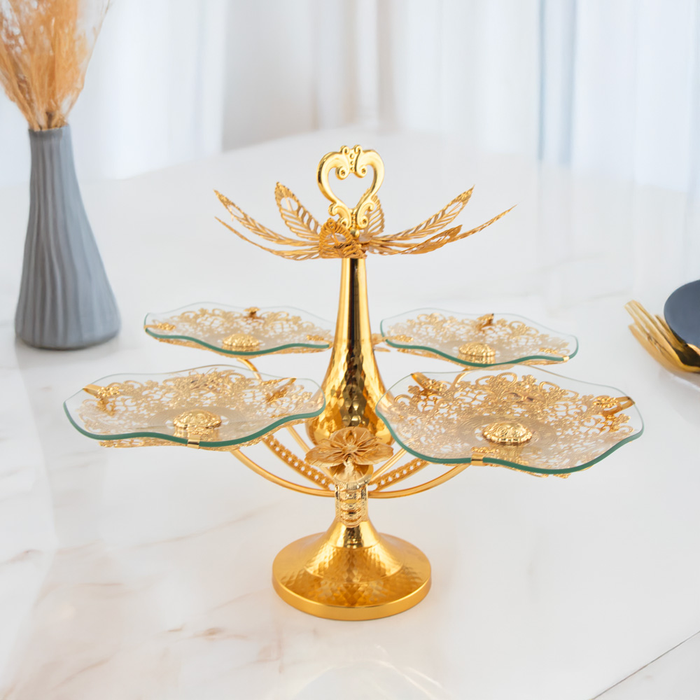 Elevate your dessert experience and impress your guests with the Durane Ornate Cake Stand in Gold—a statement piece that combines exquisite craftsmanship with timeless allure, ensuring that every sweet moment becomes a cherished memory. Crafted with meticulous attention to detail, the Durane Ornate Cake Stand exudes luxury from every angle, making it the perfect focal point for weddings, birthdays or any special occasion. Its tiered design adds dimension and drama to your dessert table, allowing you to showcase an array of delectable treats in style.
